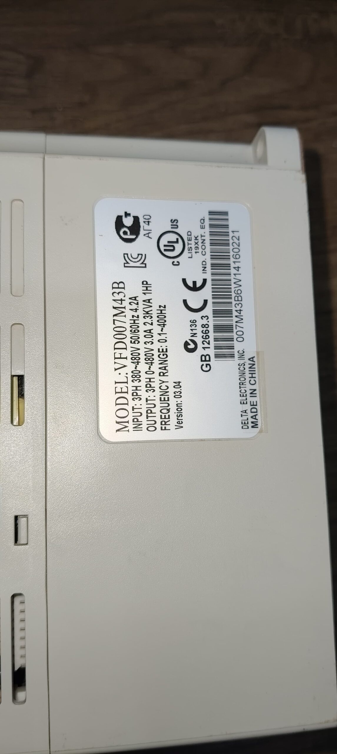 The Delta VFD007M43B is a 3-phase variable frequency drive designed for industrial automation and motion control applications. With a power rating of 0.75 kW and a rated load of 1 HP, it is capable of efficiently controlling the speed of motors in various machinery and equipment. The drive operates at an input voltage of 480 V, making it suitable for medium to large-sized machines that require precise and reliable motor control. With its reputable Delta brand and specific model designation, this VFD ensures quality and performance in a range of industrial settings.