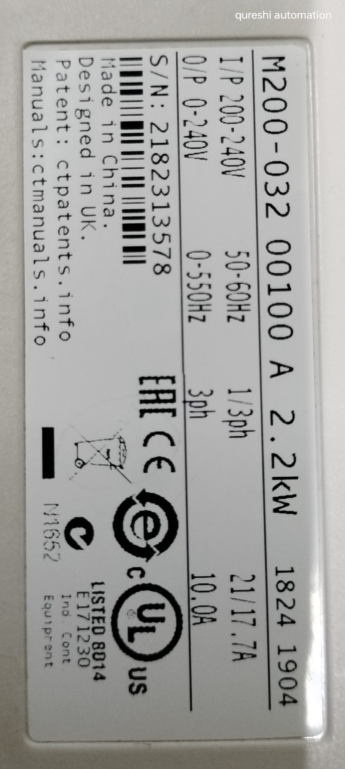 The m200-032 00100 is a 2.2 kW variable frequency drive manufactured by Control Techniques. It is designed for industrial automation and motion control applications, with a power rating of 3 HP and an input voltage of 240V. The unit operates on a single-phase system, making it suitable for various motor control needs in a wide range of industries. The Control Techniques Unidrive model ensures reliable performance and efficiency in controlling motor speed and torque for precise motion control in industrial settings.