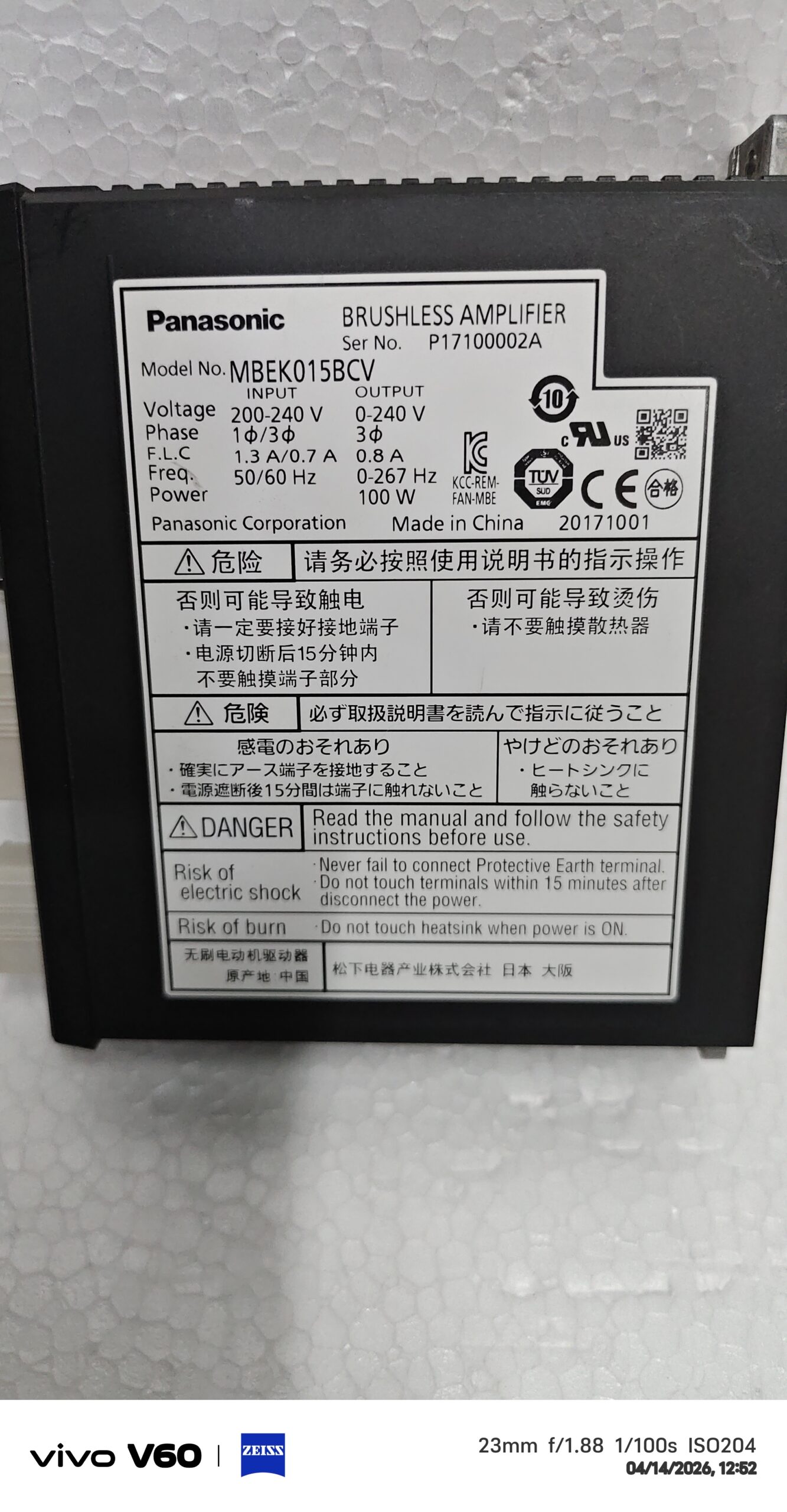 The Panasonic MBEK015BCV Servo Drive is a powerful 1 kW AC drive designed for industrial automation and motion control applications. With its 3-phase operation and servo drive type, it provides precise and efficient control for various motors. The MBEK015BCV model is known for its reliability and performance, making it a popular choice for businesses seeking high-quality motion control solutions. As part of Panasonic’s lineup of servo drives, this product offers a sturdy and dependable option for those in need of a versatile and efficient drive system.