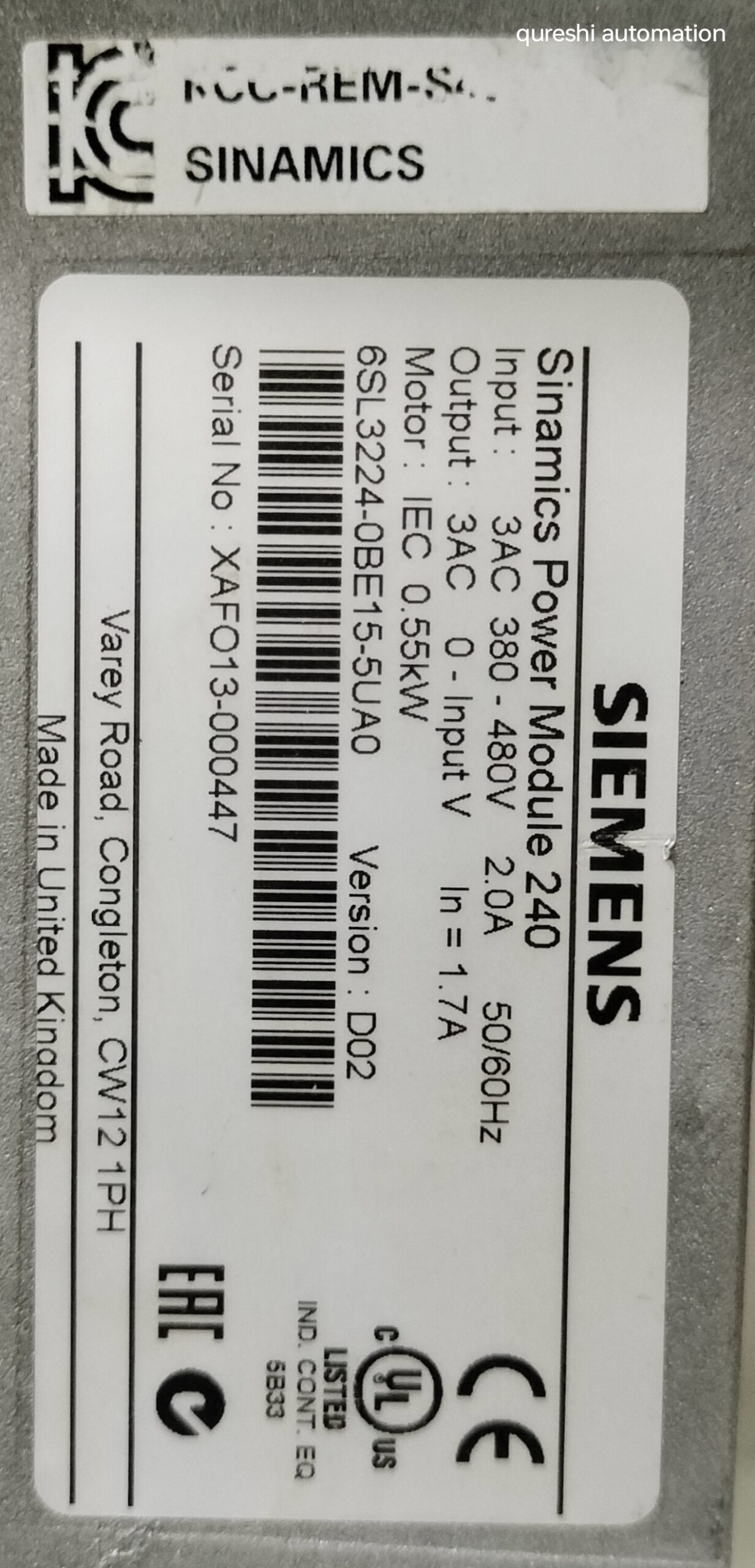 The SIEMENS 6SL3224-0BE15-5UA0 is a PLC Processor Module designed for use with the Automate controller platform. Manufactured by Siemens in the United Kingdom, this module is a single unit that is essential for controlling and managing various industrial automation and motion control systems. This high-quality component ensures reliable and efficient performance, making it a key component in any industrial automation setup.